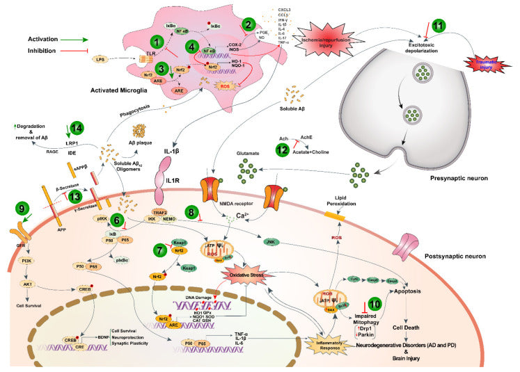 - It boosts a natural growth factor (BDNF) that strengthens memory, mental clarity, and emotional balance — by activating the survival pathway (PI3K/Akt/CREB) (see Figure 1, #9).